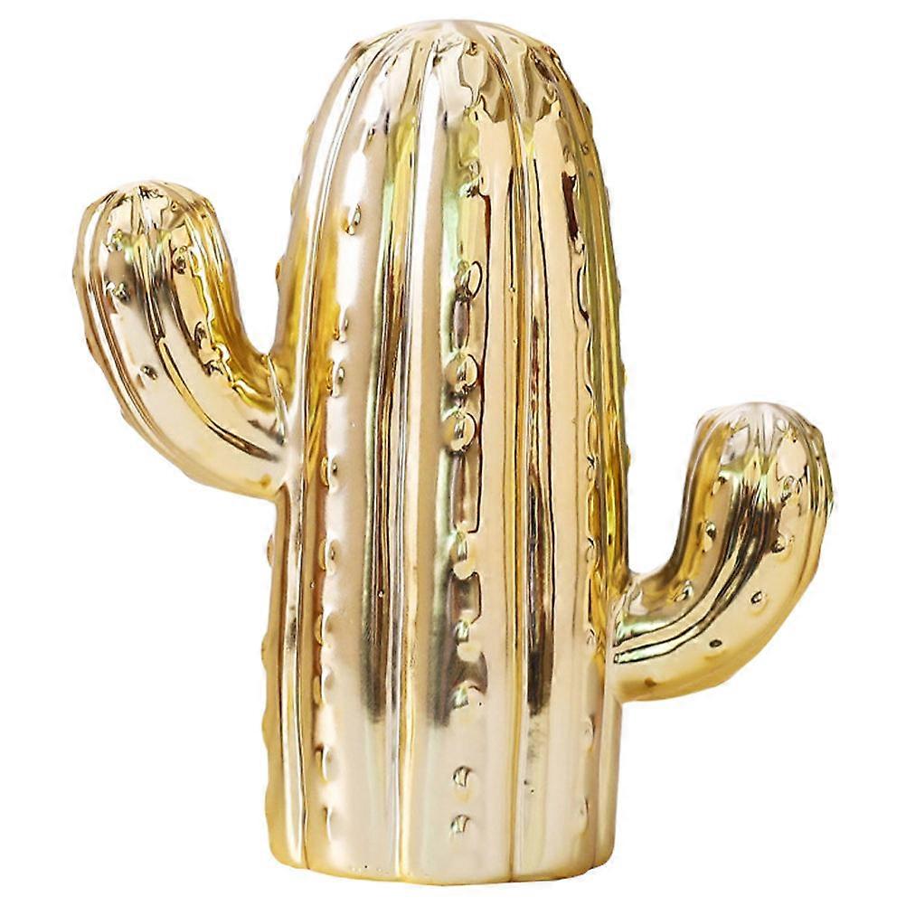 Cactus Decor Ceramic Piggy Bank Desktop Decor Living Room Savings Golden 1Set