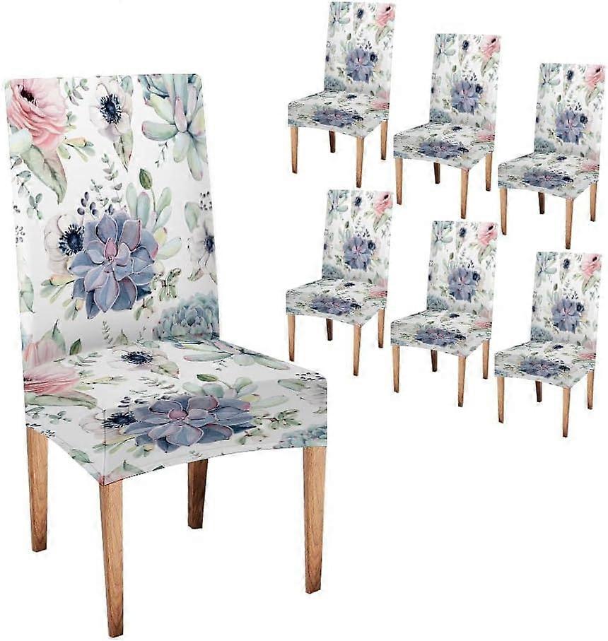 Cactus Dining Chair Slipcover 6 Pack Tiled Black and White Mosaic of Flower Stretch Spandex Kitchen Chair Slipcovers Removable Washable Geometric Pars