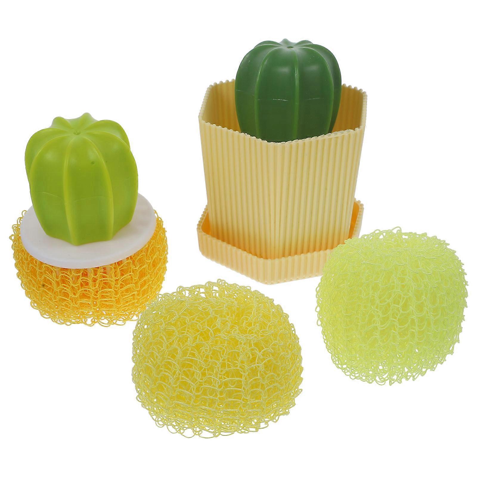 Cactus Shaped Cleaning Balls with Non Slip Handle & Elastic Bristles for Kitchen, Bathroom, and Heavy Duty Home or Restaurant Use
