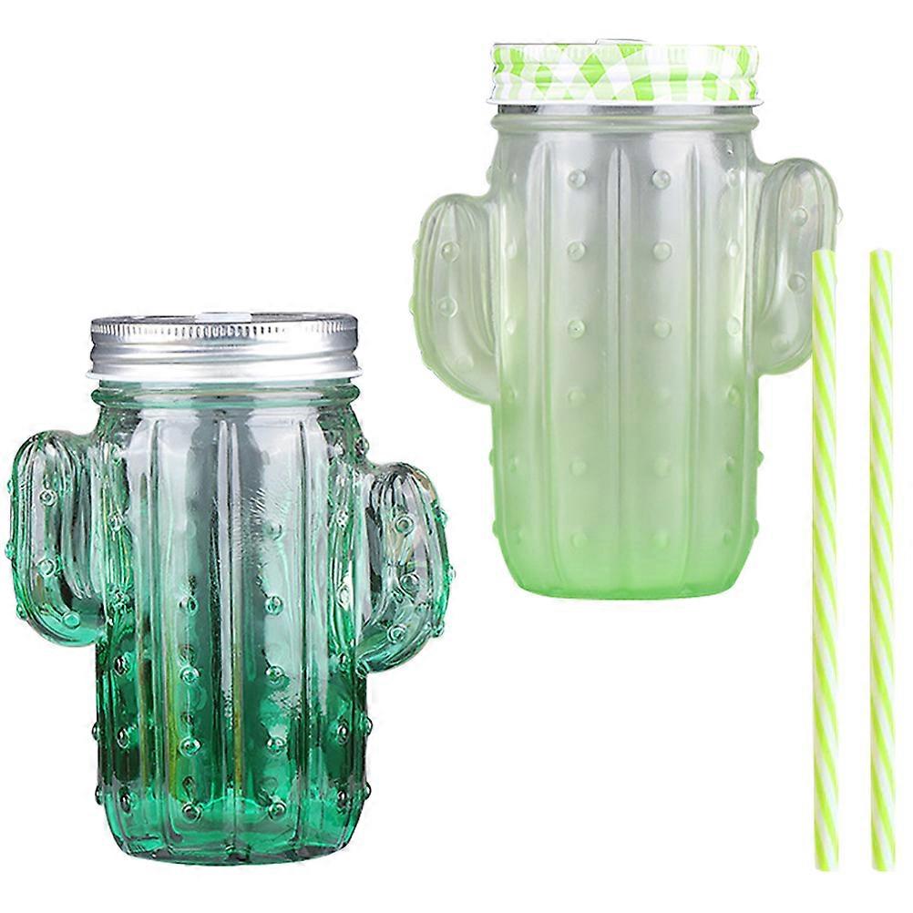 Cactus Shaped Drinking Cups Wide Mouth Lidded Cup Drinking Straw Cups Fashionable Design Families 2Sets
