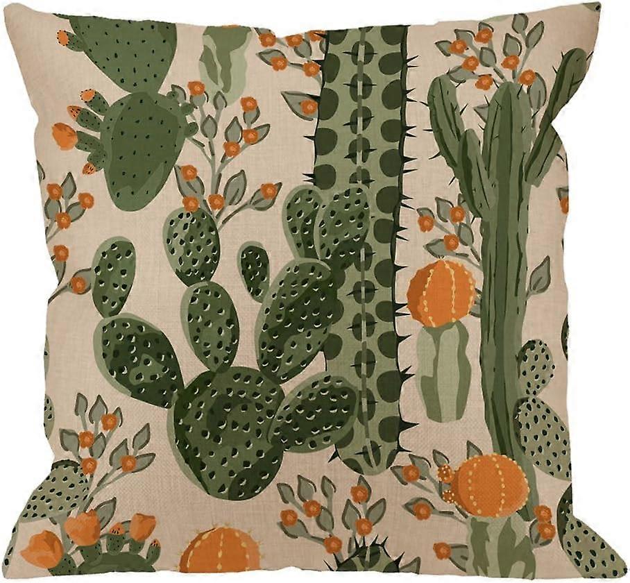 Cactus Pillow Covers Decorative Green Succulent Cactus and Orange Flowers Cotton Linen Square Pillow Case for Men/Women / 18x18 inch - Light Green and