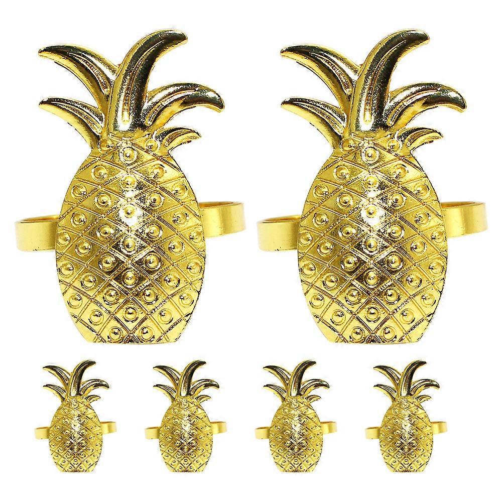 Summer Napkin Rings Pineapple Napkin Rings Golden Metal Tableware For Summer Parties 6Pcs