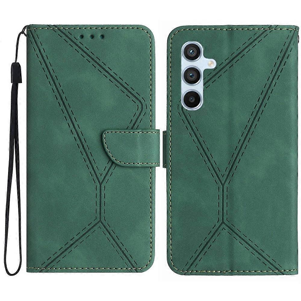 For Samsung Galaxy A26 5G Case Skin-Touch Lines PU Leather Flip Phone Cover - Green