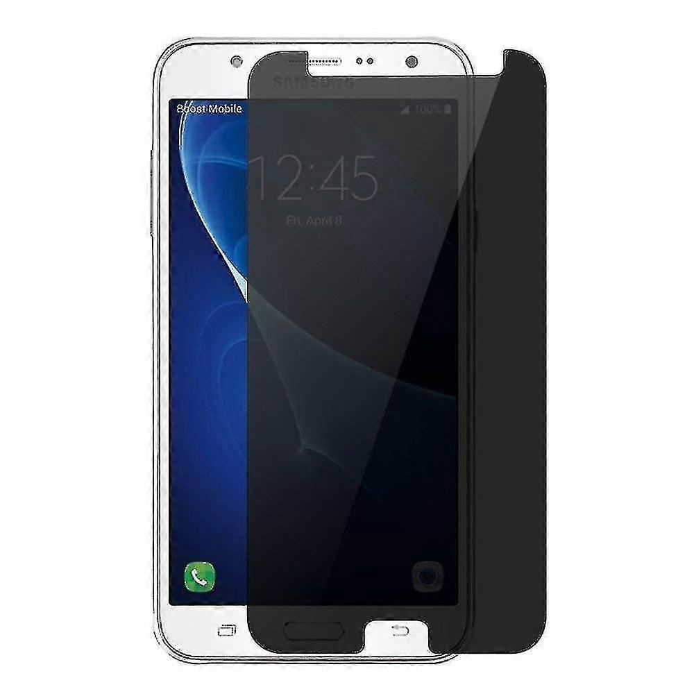 Comprehensive and Privacy-Protected Samsung Galaxy J3 Prime Ground Protector shaded in curable glass with oleophobic (chemical) treated surface that allows the screen protector to protect against stains and scratches, and fingerprints