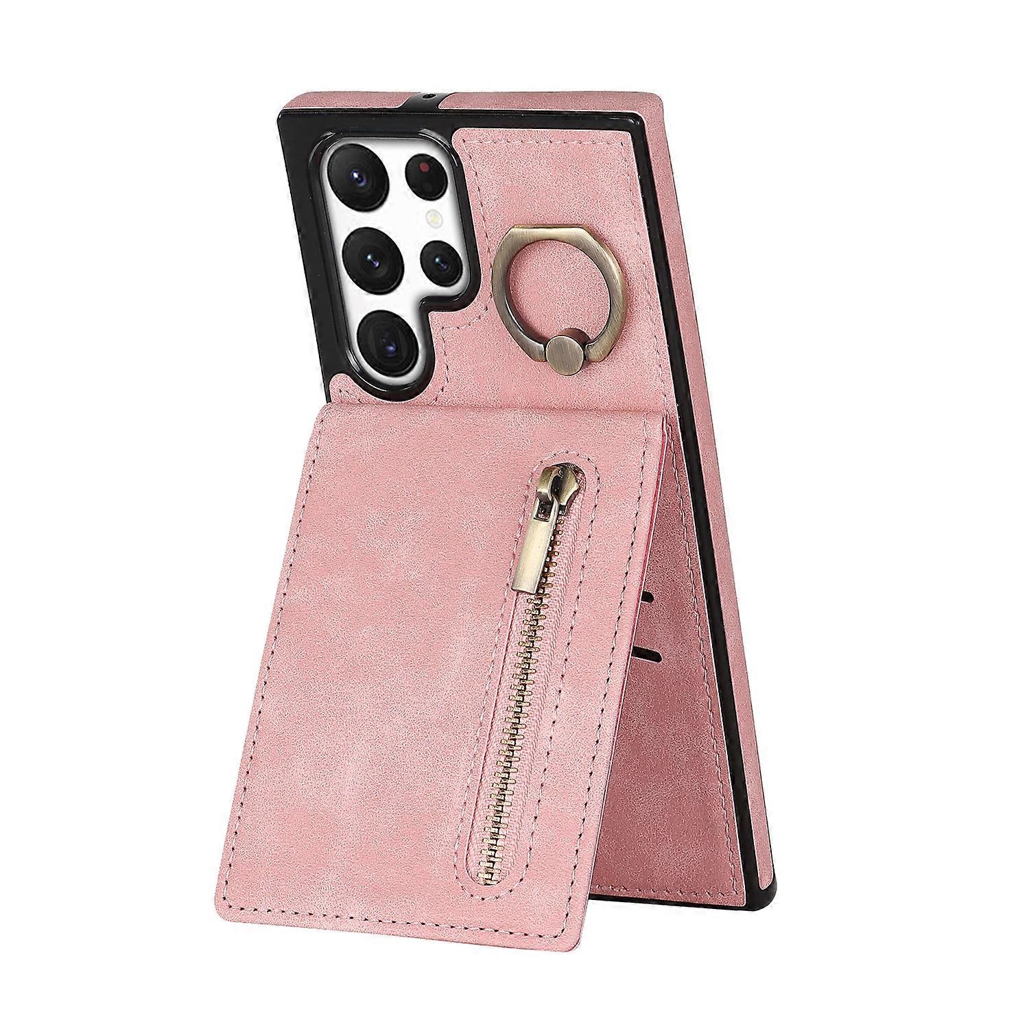 For Samsung Galaxy S22 Ultra 5G Retro Ring and Zipper RFID Card Slot Phone Case