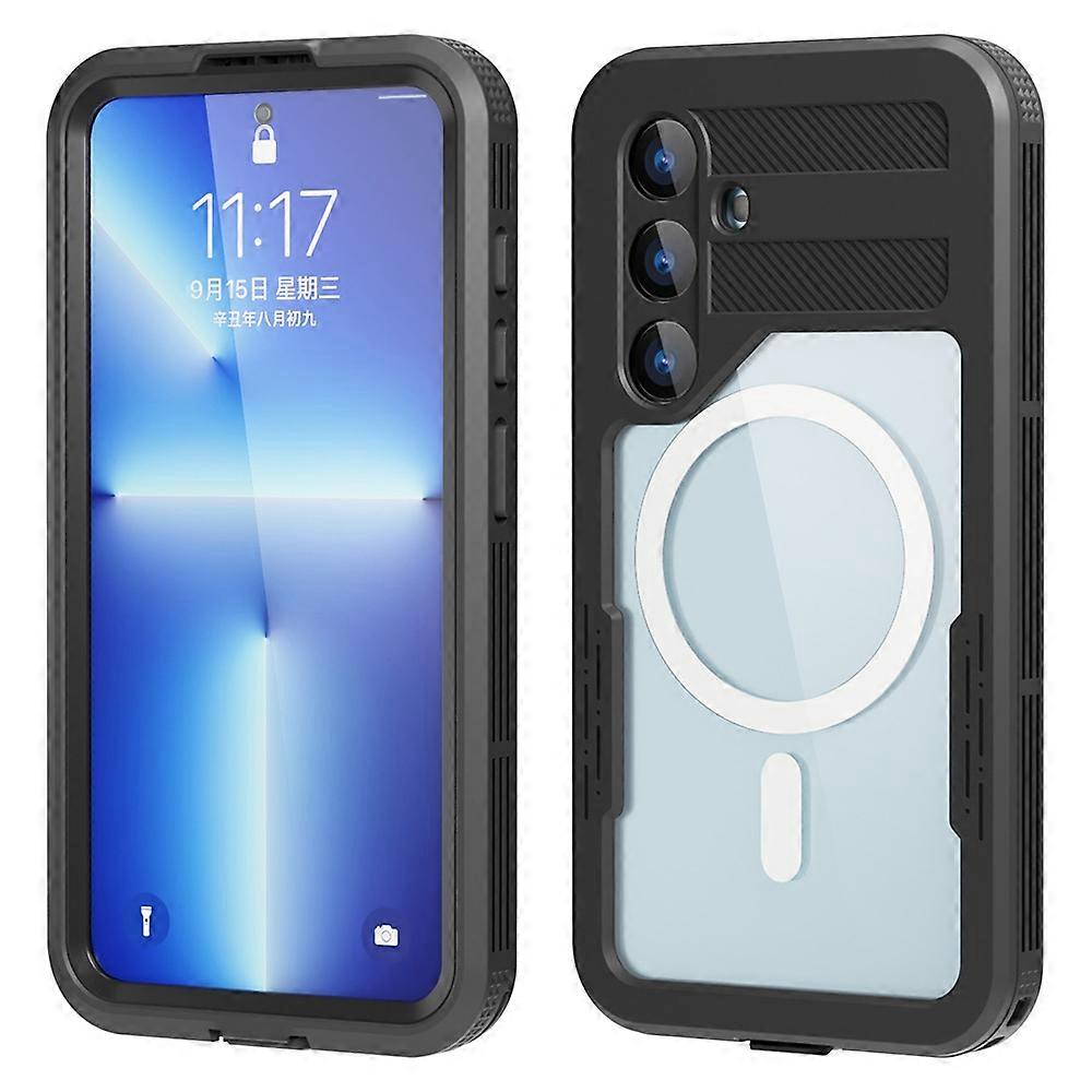 REDPEPPER For Samsung Galaxy S24 IP68 Waterproof Magnetic Case Clear Phone Cover - Black Adopts premium TPU,PET and PC materials with 360 degrees all-inclusive design,which protects your phone from scratches,shocks,and other daily damage as well. Exceeding the IP68 waterproof rating,this case is with a precise 100% waterproof effect and is suitable for daily use,surfing,swimming,cycling,driving,snorkeling and etc. •Dustproof: With IP6X rating with zero dust intrusion,which can isolate dirt,dust,sandstorms,and can withstand dirt and construction dust •Waterproof: Pass the IP68 waterproof rating test,which can completely isolate the mobile phone from snow,ice and water. It can be used normally for 30 minutes under two meters of water •Anti-drop: 2 meters drop resistance,the high-quality impact-resistant PC,soft-touch TPU bumper and air-tight and water-tight acoustic membrane provides a 360° all-round protection •The PET screen protection film is wear-resistant,scratch-resistant,and drop-resistant. With sensitive touch,it will not affect any function of the touch screen at all •Reserve the camera viewfinder window to adapt to shooting in a variety of environments •Reserve the protective plug for the earphone jack,the charging port,the power button,and the volume button,which can be disassembled freely,safe and practical •With a built-in magnet,compatible with MagSafe and support wireless charging •Reserve the protective plug for the earphone hole,the charging port,the power button,and the volume button. Freely detachable,safe and practical •Thin and light style ensure clear call quality Installation method: •1. Put the paper on the empty shell and conduct a waterproof test for 15 minutes to 30 minutes (reminder: carefully check the sealing ring before the test,whether the waterproof gasket is properly assembled,whether it is installed tightly,and conduct a comprehensive inspection) •2. If the test shows no leakage,please install the real machine correctly according to the above procedures •3. The mobile phone must be assembled with the bare machine (no film,decorations,tempered glass,etc.),it should be attached to the body of the mobile phone. When installing the machine,you must first align the mute button before installing the machine. The product screen is scratch-resistant,and the phone does not need to apply screen film. The extra film will affect the protection effect. •4. After installation,test the function keys to see if the phone can be used normally •5. If the test shows there is leaking water,please do not install the real machine,please contact the sales staff as soon as possible •6. Make sure that the paper in the empty shell is not wet,and there is no water in the shell,you can install the real machine (Note: After confirming that there is no water leakage,it is not allowed to install the phone into the water for testing.) Package included: •​1 x Waterproof Case •1 x Cleaning Cloth •1 x Hand Strap •1 x English User Manual •Accessory only,phone not included