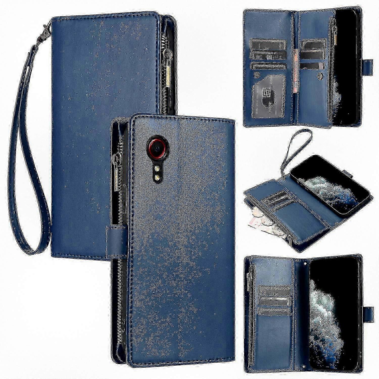 Samsung Galaxy Xcover 5 PU Leather Flip Case with Zipper Wallet Card Slots and Magnetic Closure