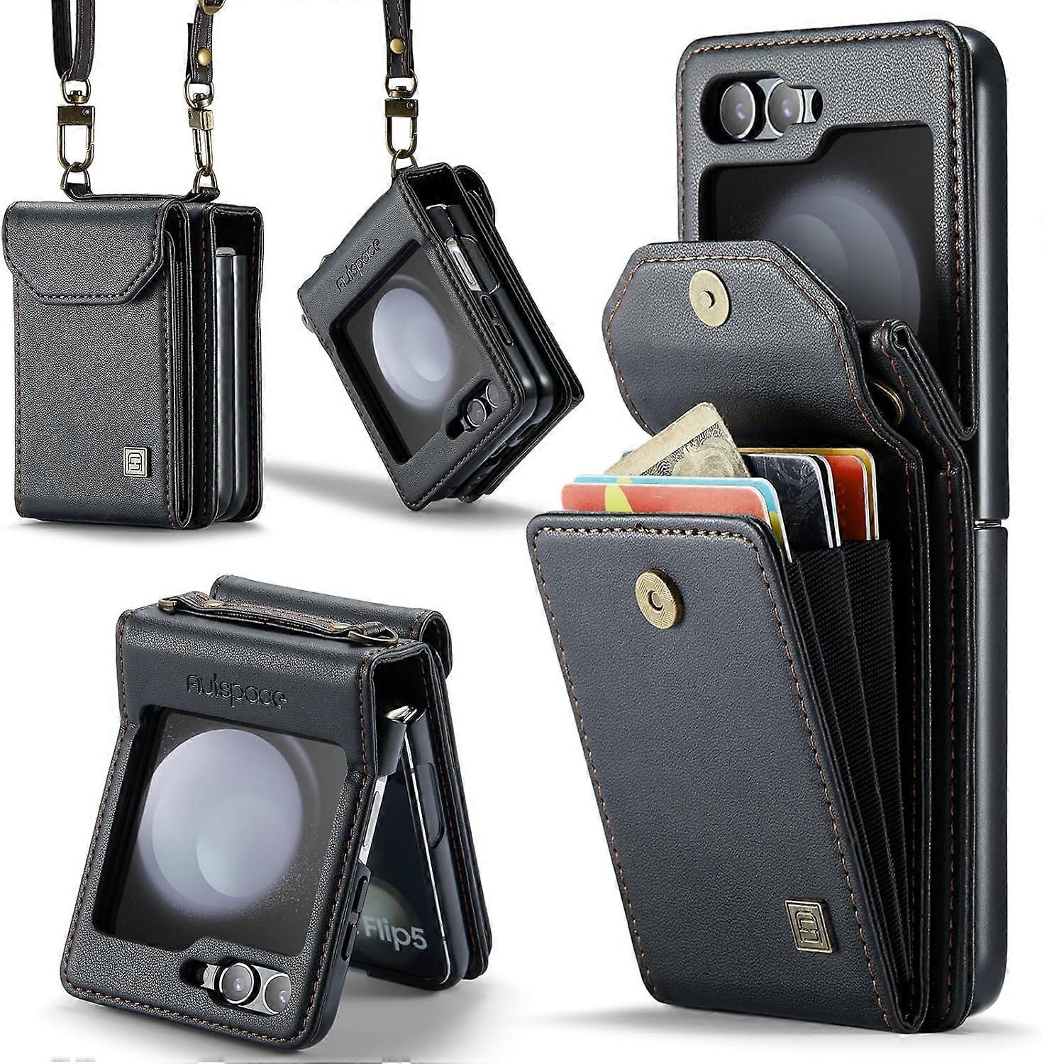 for Samsung Galaxy Z Flip 5 Case Retro PU Leather Flip with Magnetic Closure and Card Slot, Crossbody Phone Holder for Men Women