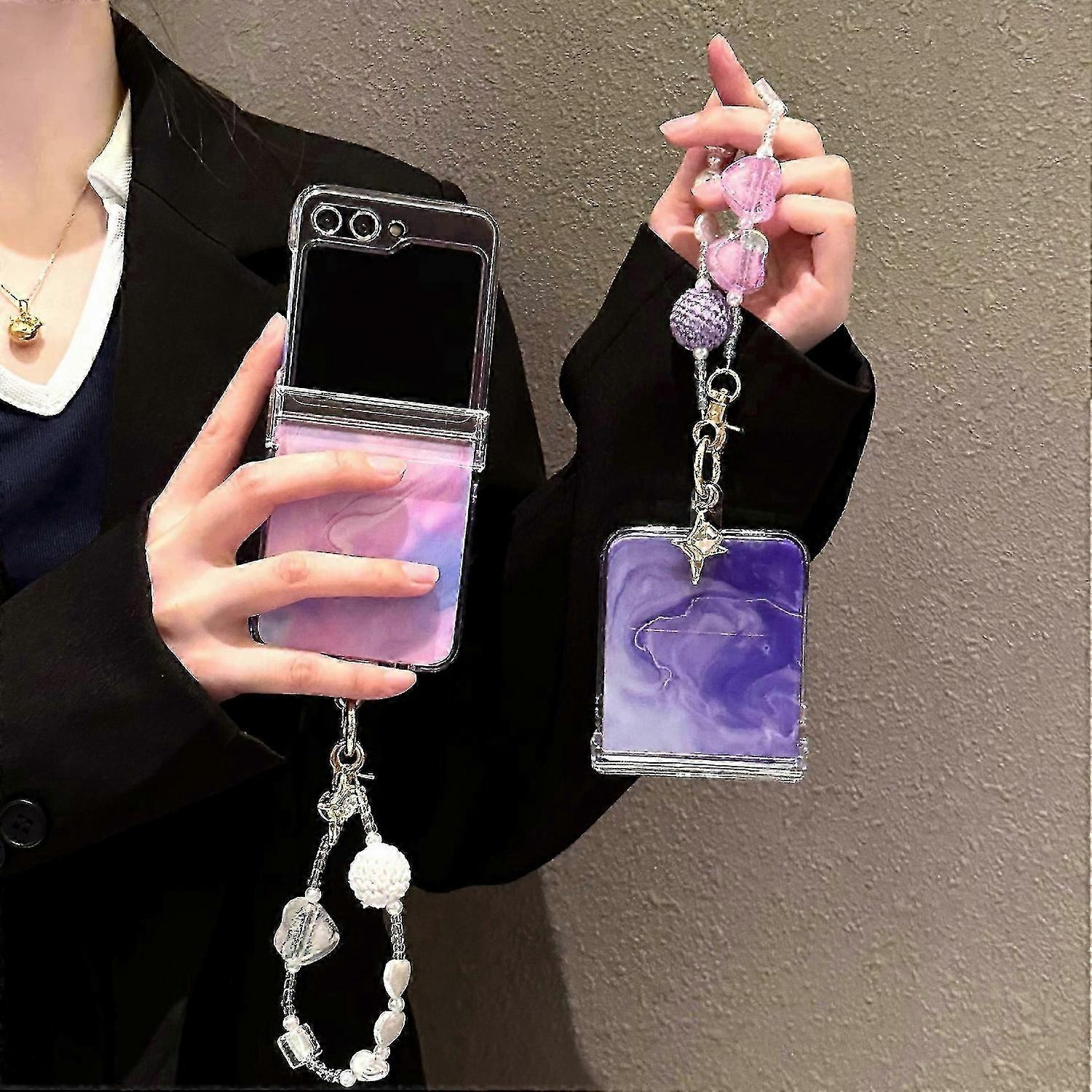 Cute Cartoon Pattern Case for Samsung Galaxy Z Flip 6 with Strap Bracelet Chain for Girls Women