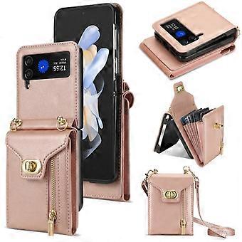For Samsung Galaxy Z Flip4 Zipper Card Slots Folding Phone Case with Long Lanyard