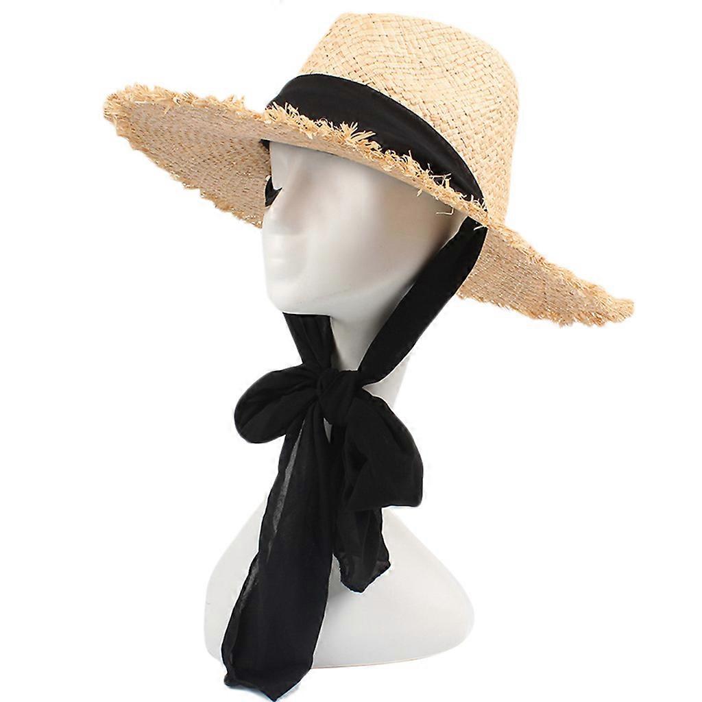 Girls Straw for Sun Cap Hepburn Style Lightweight Raffia Braid Adjustable Straps for Sun Hats Charming Lady Daily Access Black lace