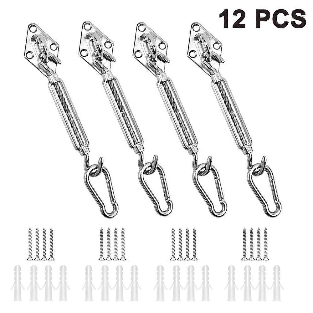 12 Pieces Set of Sun Sail Accessories Hammocks Ceiling Hook Hanging Chair High Quality Stainless Steel Assembly Set for The Safe Assembly of Square an