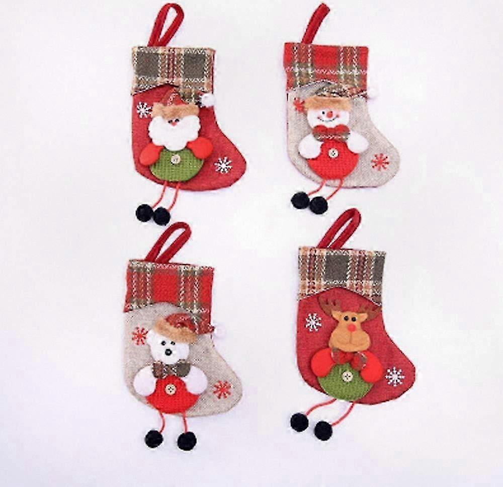 4-Piece Festive Holiday Stocking Set with Santa, Snowman, Reindeer, and Bear Designs - Decorative Hanging Sock Pouch for Candy