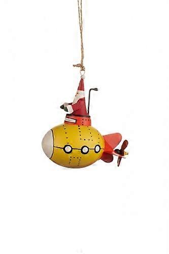 SHOELESS JOE SANTA IN A YELLOW SUBMARINE CHRISTMAS TREE DECORATION. This unique and wonderful hand crafted Christmas tree decoration from Shoeless Joe is the perfect addition to your decoration collection. Featuring a metal Santa in a vibrant yellow submarine with black and white detailing and finished with a piece of rustic string so you can hang this wonderful decoration from your Christmas tree.. The detail in this Christmas decoration is fantastic and will be sure to make you and your loved ones smile. The perfect unique Christmas gift this year