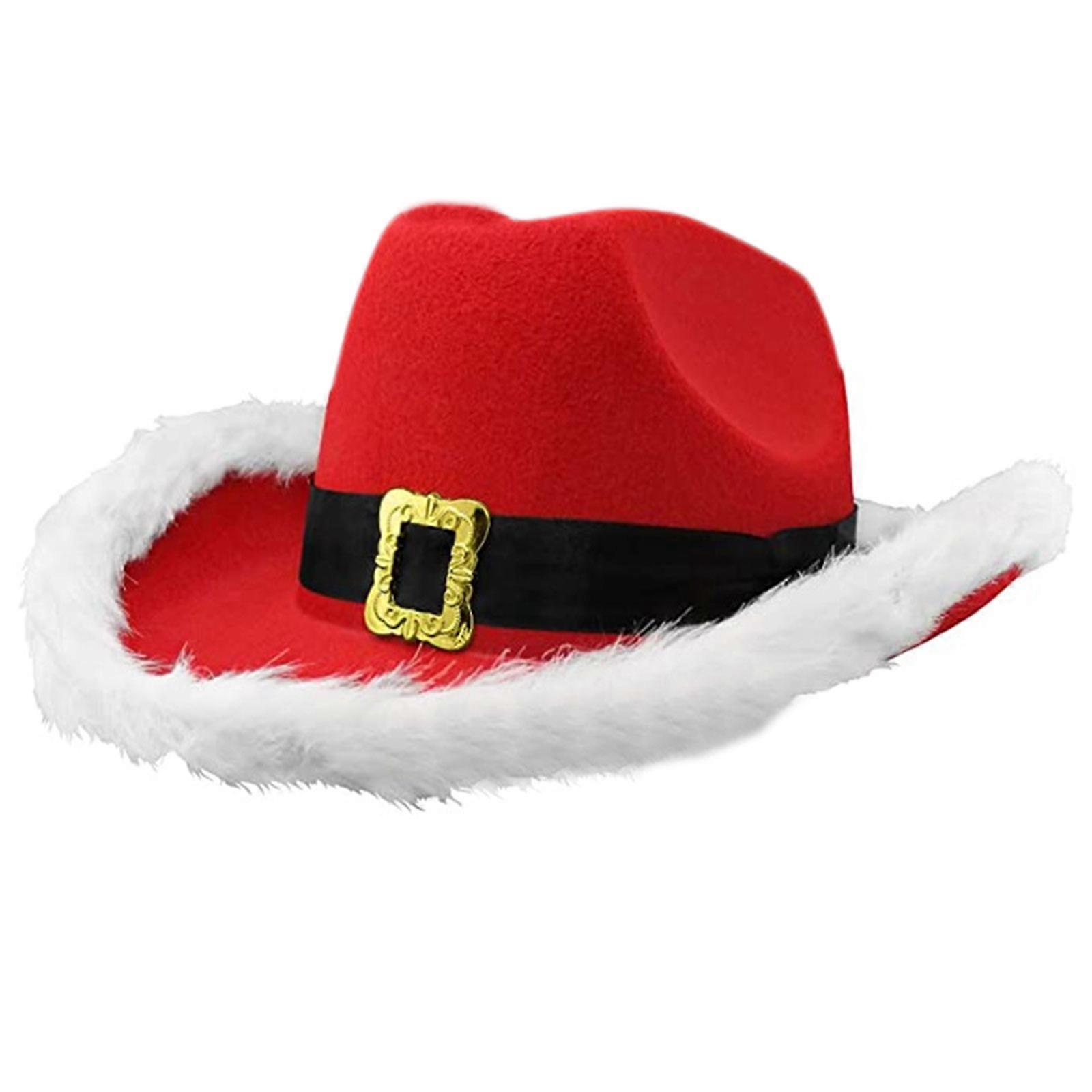 Santa Claus Party Cap Christmas Hat Felt Hat Western Red Cowboy Hat Wide Brim Cowgirl Hat Jazz Hat for Women Men Red