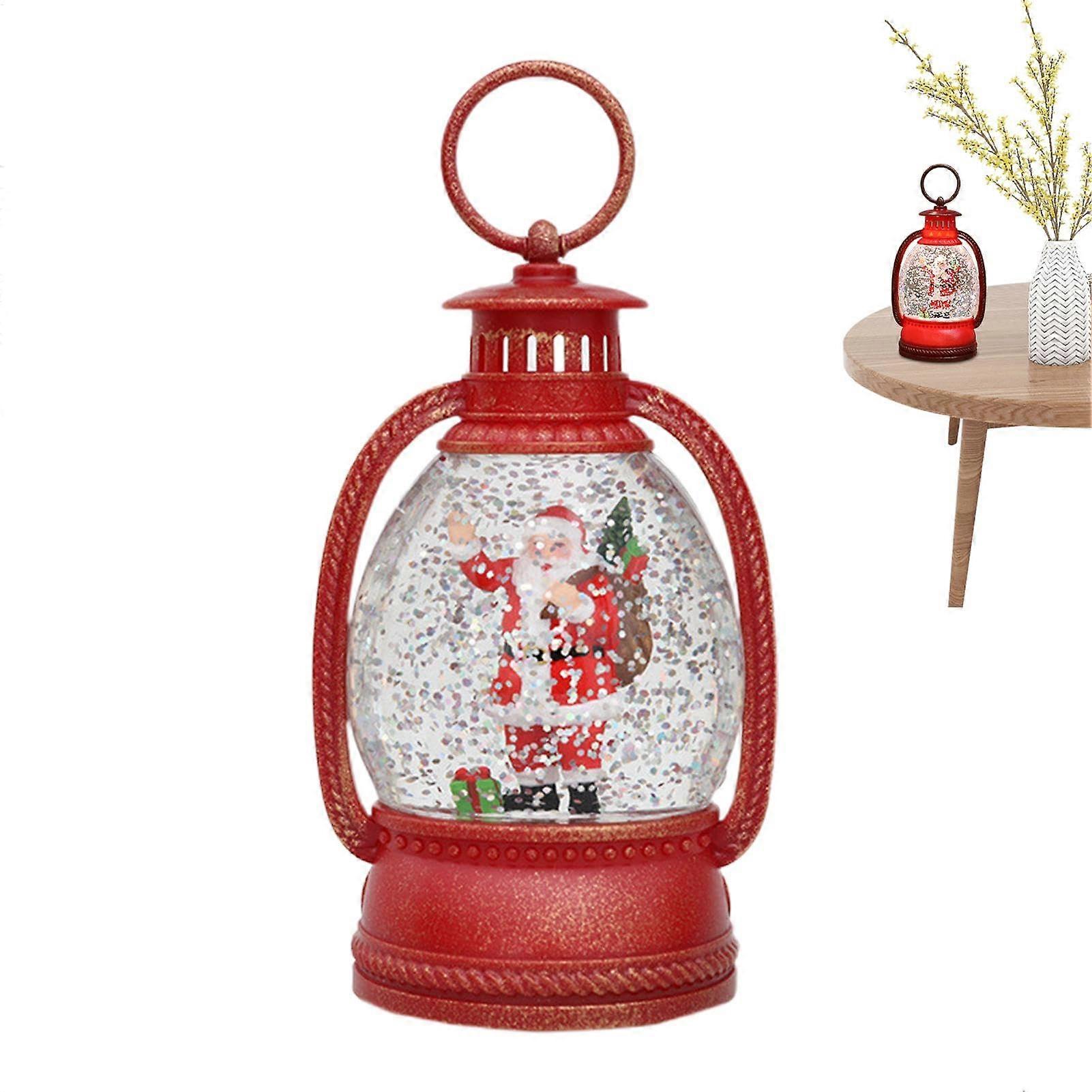 Snow Globe Lantern Illuminated Snow Globe Santa Claus Battery-Operated Ornament Vintage Christmas Table Decoration