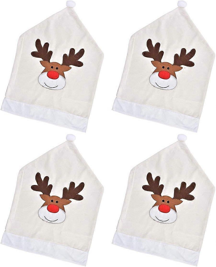 Set of 4 Christmas Chair Covers with Santa Claus Hat Embroidery and Fun Moose Design - Perfect Holiday Decorations for Home or Office