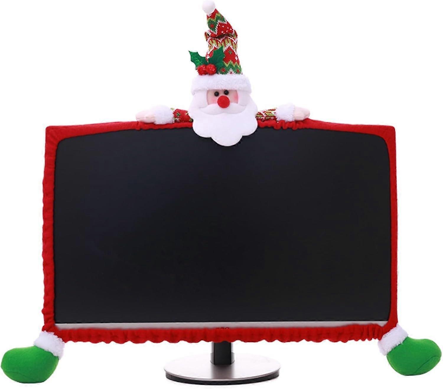 Christmas Computer Monitor Cover with Santa Claus Elastic Decorative 19-27 Inch Dustproof Cover for PC, TV, Laptop, LCD Screen (Santa Claus)
