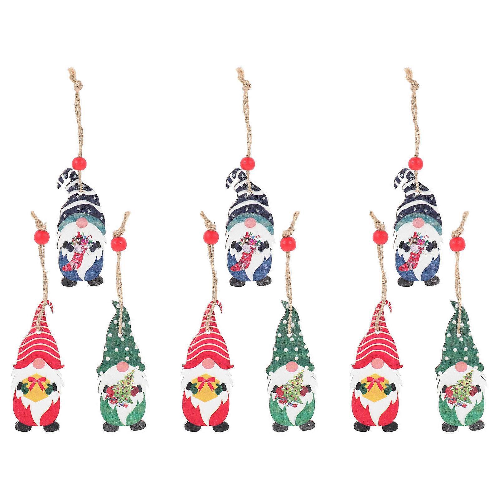 Santa Pendant Hanging Christmas Decoration Wooden Dwarf Pendant 9Pcs