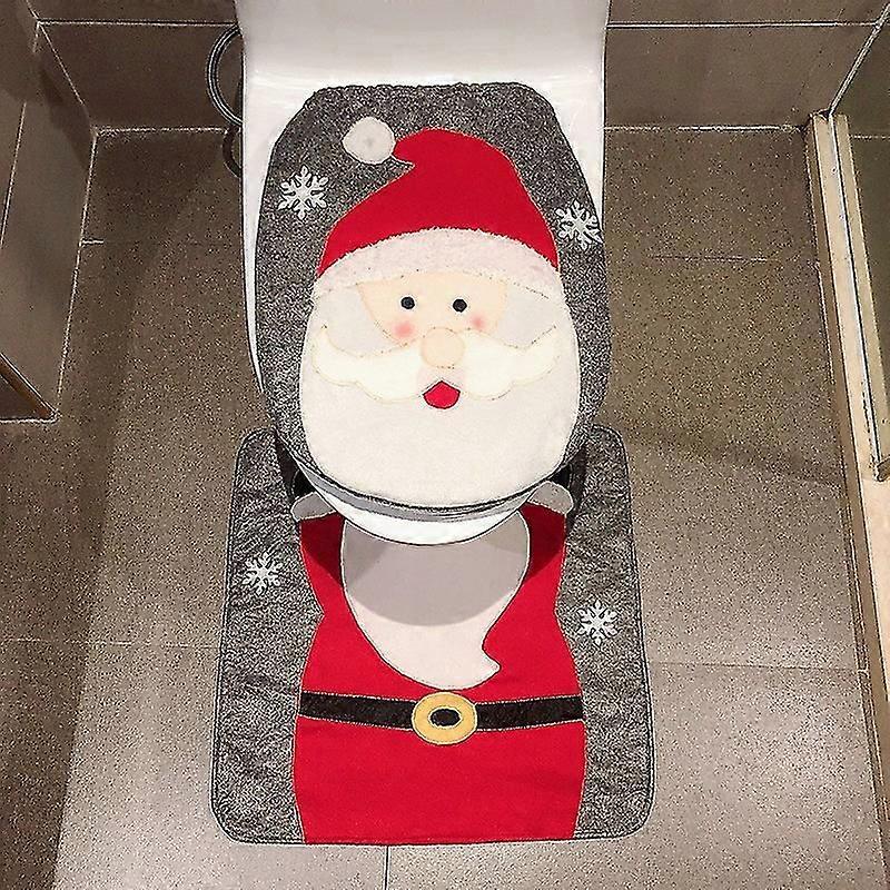Santa Toilet Seat Cover And Rug Set Christmas Decor Bathroom
