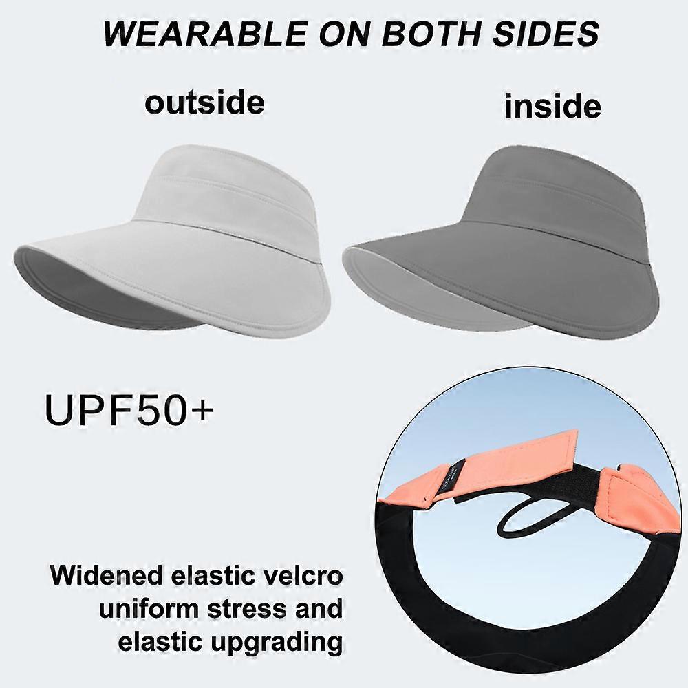 Sun Visor Hats Women Large Brim Summer Uv Protection Beach Cap, Wearable On Both Sides, Empty Top Beach Hat Style 2