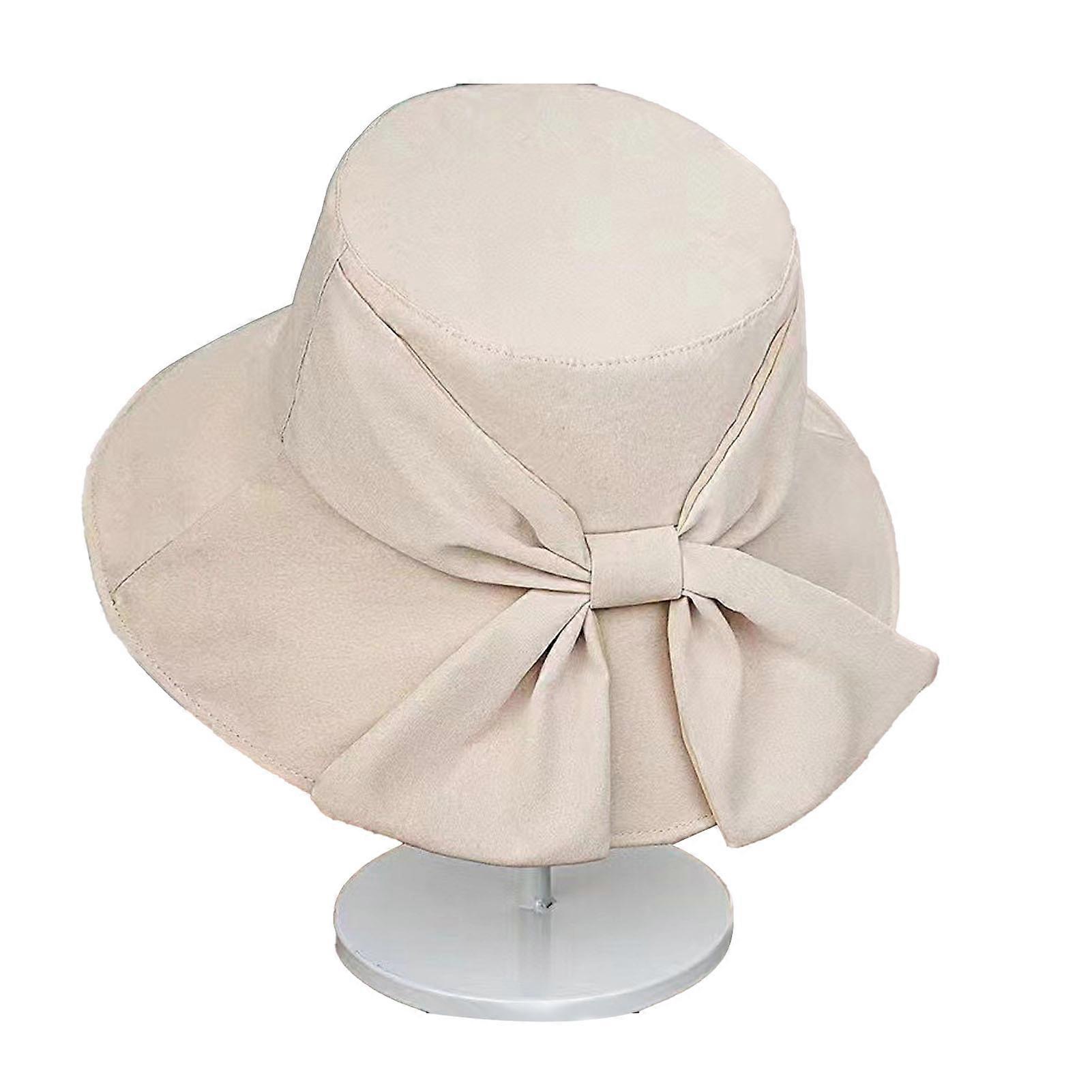 Sun Hat Stylish Acrylic Fiber Breathable Lightweight Adjustable Band Bucket Hat with Bow Tie for Women White