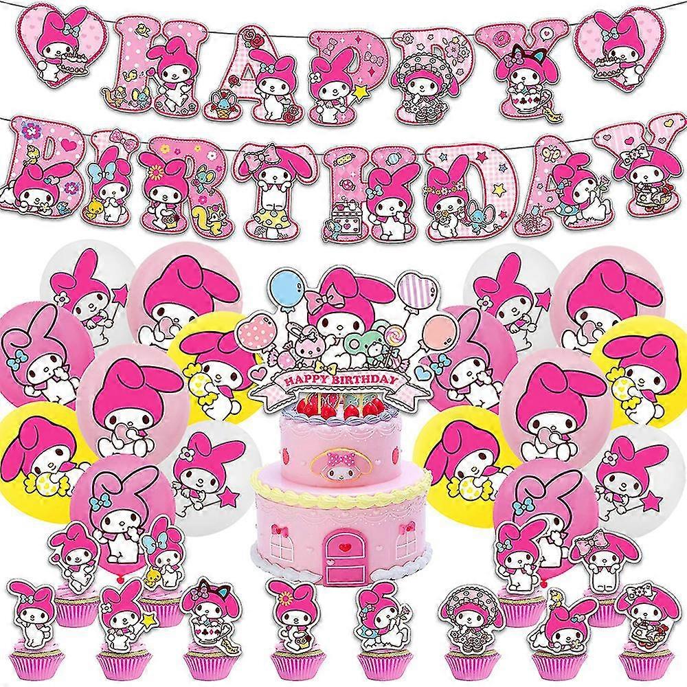 Sanrio My Melody Kids Girls Cute Cartoon Anime Birthday Party Decorations Set Balloons Banner Cake Topper Supplies Kits