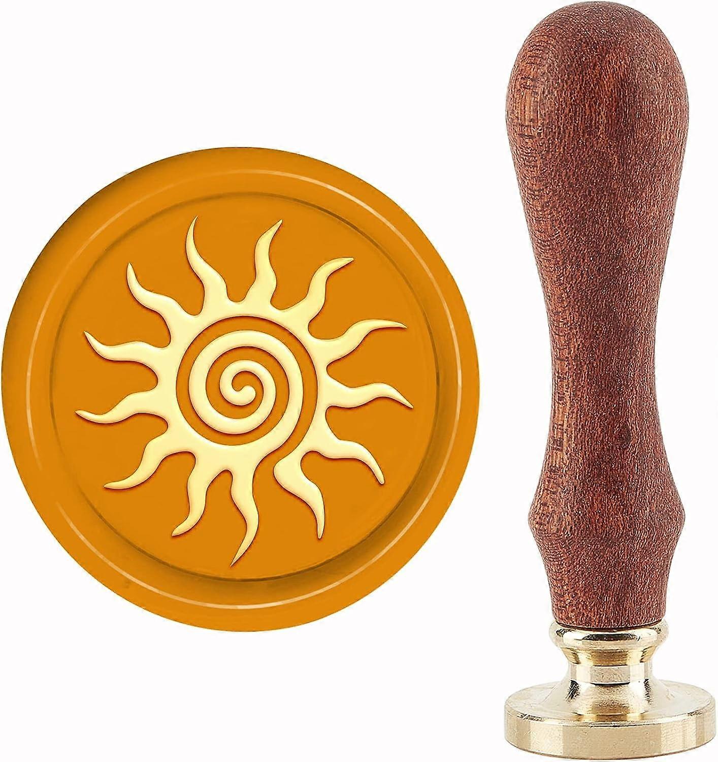 Sun Wax Seal Stamp Vintage Sealing Wax Stamp 30mm/1.18inch Removable Brass Head Sealing Stamp with Wooden Handle for Birthday Wedding Invitations Card