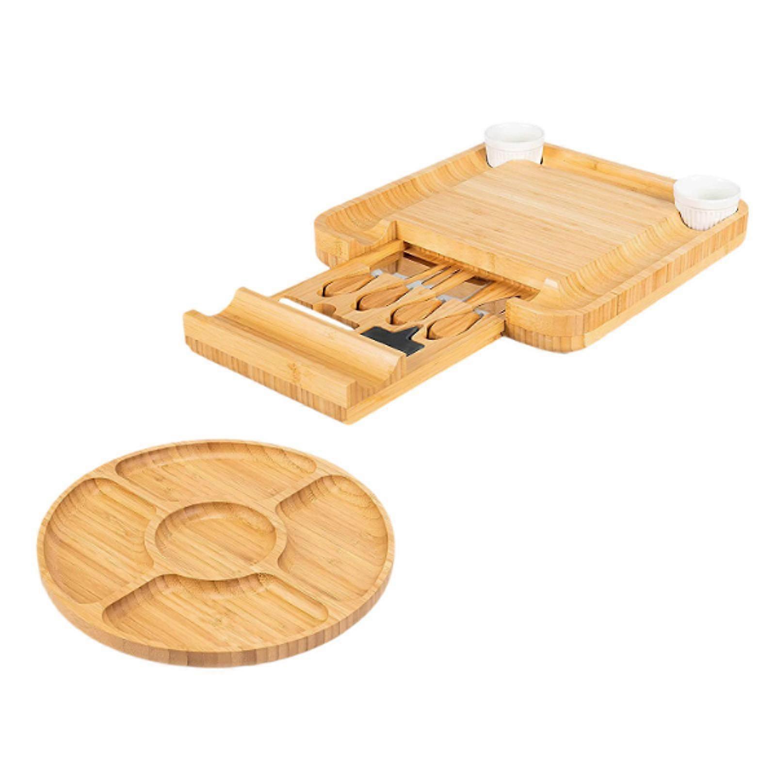 Serving Cheese Tray Bamboo Cheese Board for Housewarming Celebration Wedding with round plate