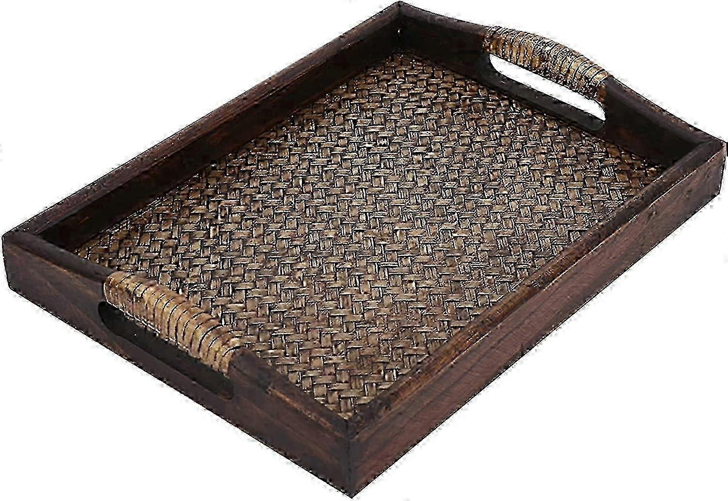 Serving Tray, Wooden Breakfast Tray, Decorative Coffee Table,rectangular Wooden Tray With Handle
