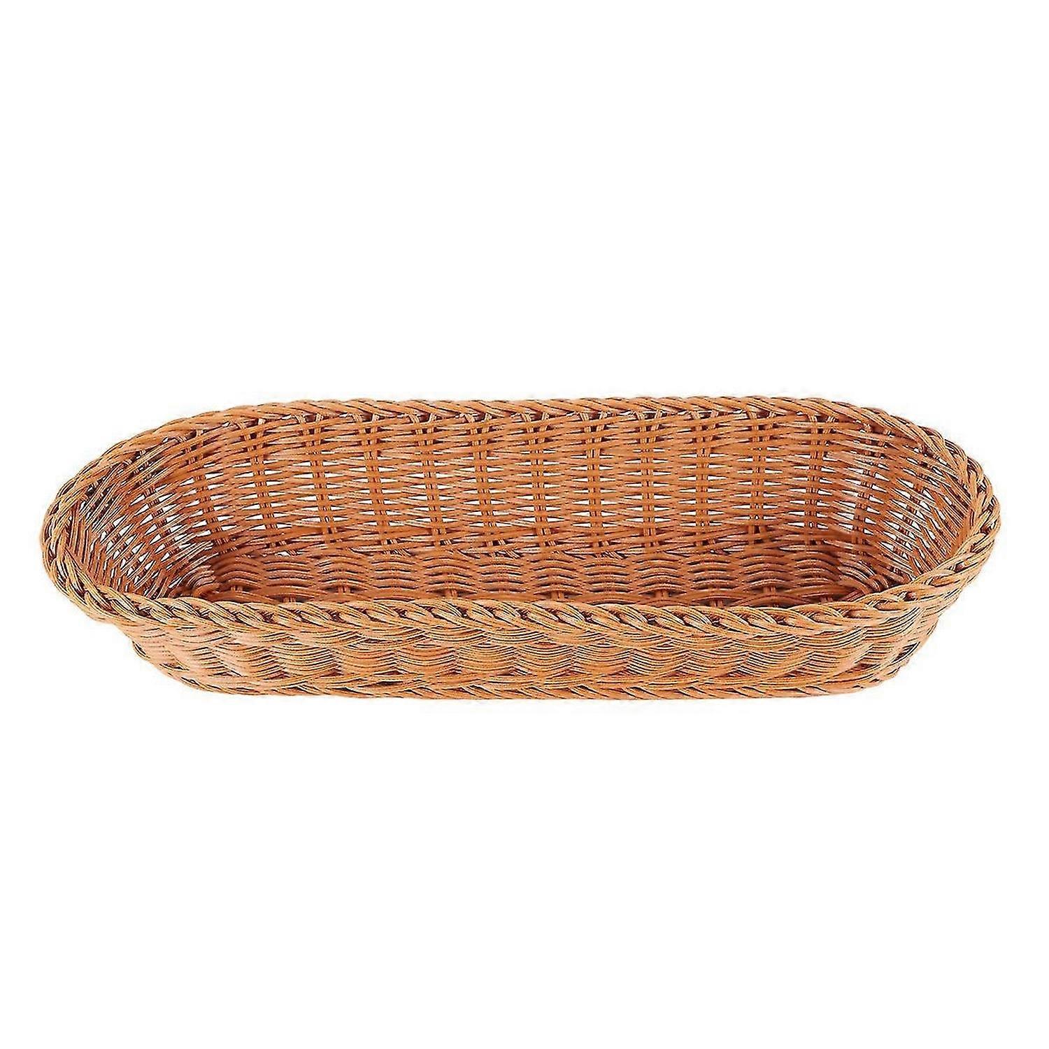 Excellent For Displaying And Serving Bread Loafs, , And Pastries Dishwasher & Microwave Safe - Not Mold Like Natural Rattan size:36*14*7.5cm Material:plastic colour:Coffee color Package Contents: 1 * Storage basket Only the above package content, other products are not included. Note: Light and different displays may cause the color of the item in the picture a little different from the real thing. The measurement allowed error is +/- 1-3cm.