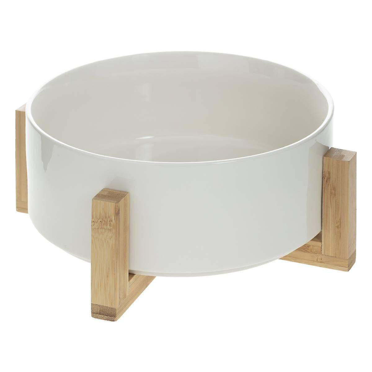 Den här serveringsskålen har en unik och tidlös design. Själva skålen är tillverkad av vitmålat lergods, och den levereras tillsammans med en hållare av naturfärgat bambumaterial. Skålen passar lika bra för sallad som frukt, godis och snacks. - Serveringsskål med tidlös design - Tillverkad av lergods - Levereras med snygg hållare av bambu Specifikationer: Färg: Flerfärgad Material: Lergods och bambu Mått: 28 x 28 x 11,2 cm Diameter: 23 cm
