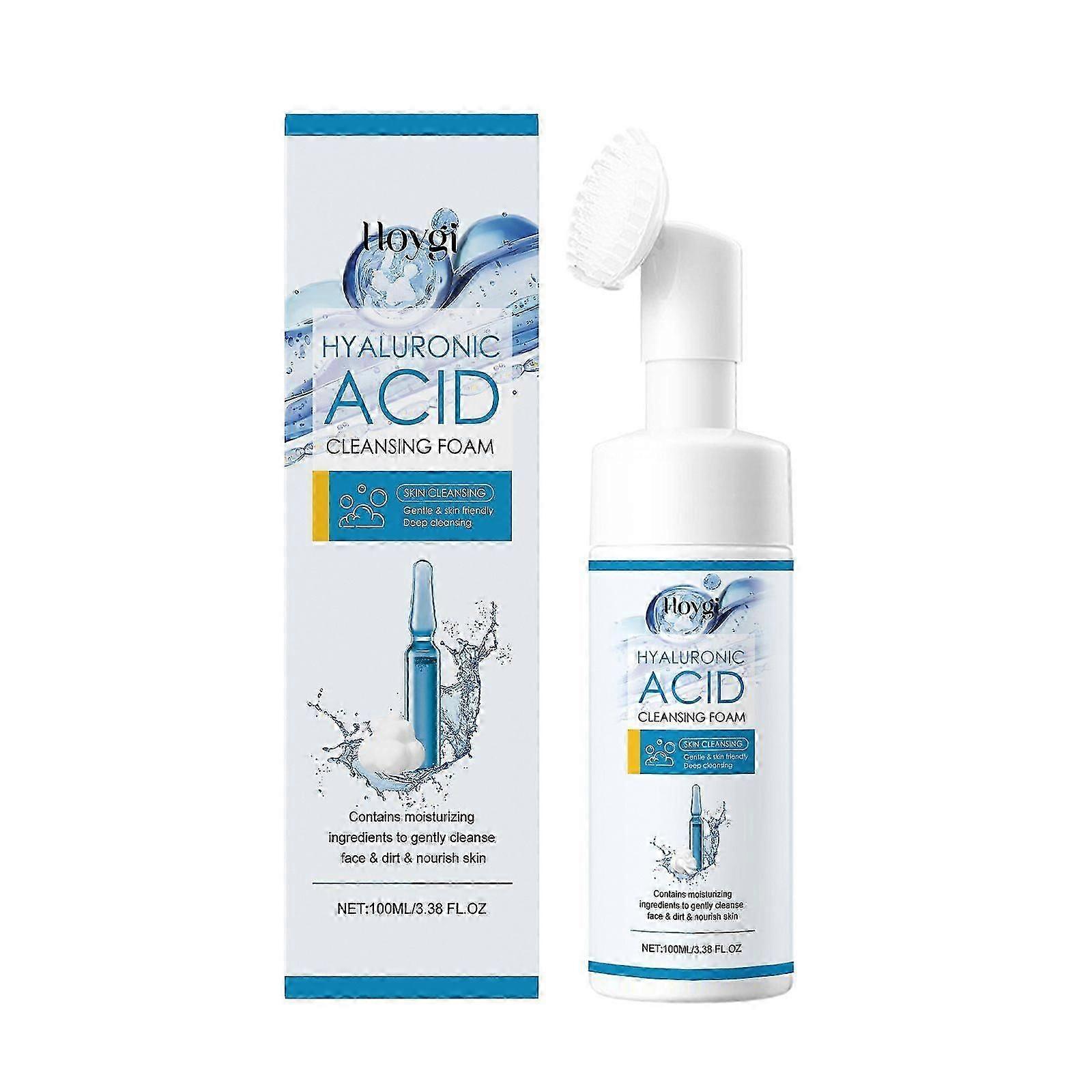 Gentle Foaming Face Wash, Deep Cleansing Facial Cleanser with Brush, Hyaluronic Acid Moisturizing & Non-Irritating Control Pore Cleaner for Sensitive