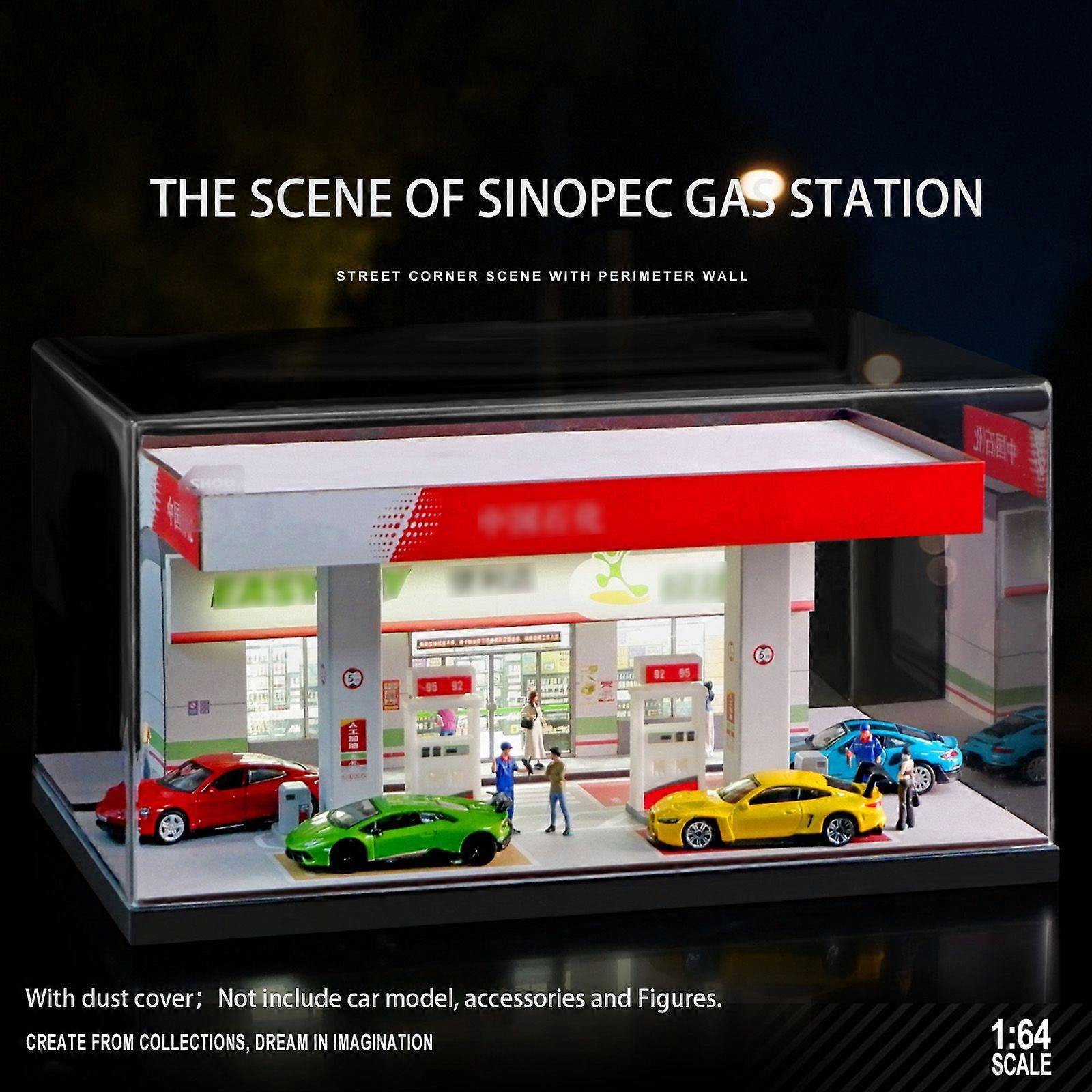 Diorama 1/64 Car Garage Model LED Lighting Gas Stations Parking Lot Scene ModhS