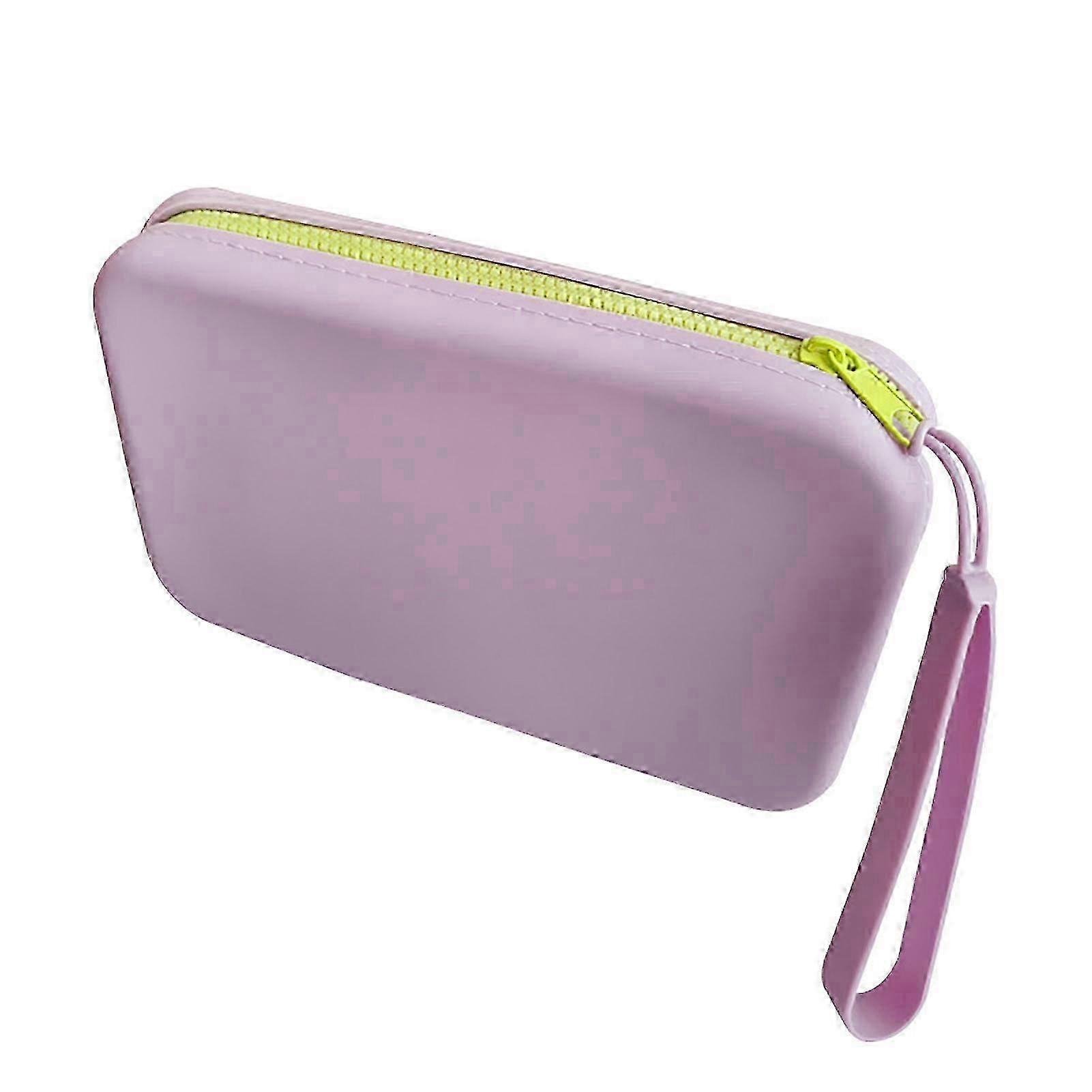 Portable Silicone Cosmetic Bag with Zipper & Detachable Strap for Travel - Purple