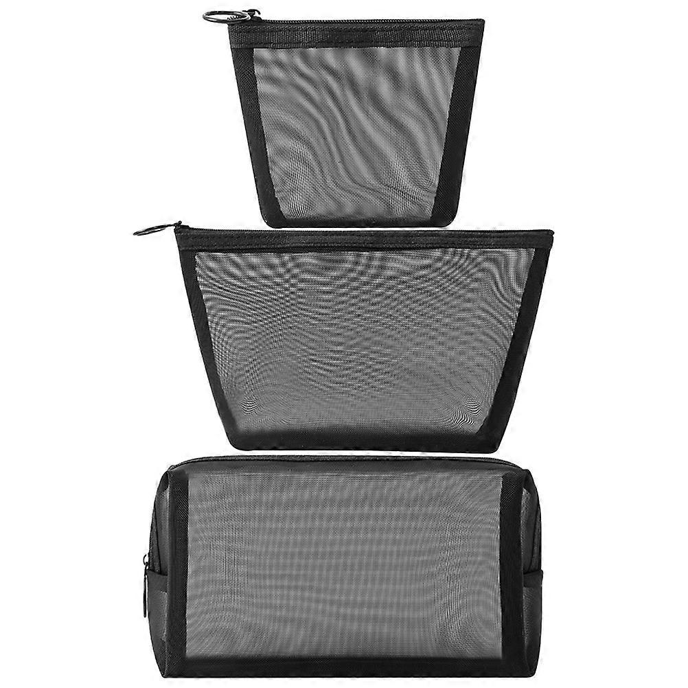 3pcs Mesh Makeup Bags with Zipper Travel Pouches for Toiletries Durable Storage Containers with Hanging Hook for Organizing Essentials