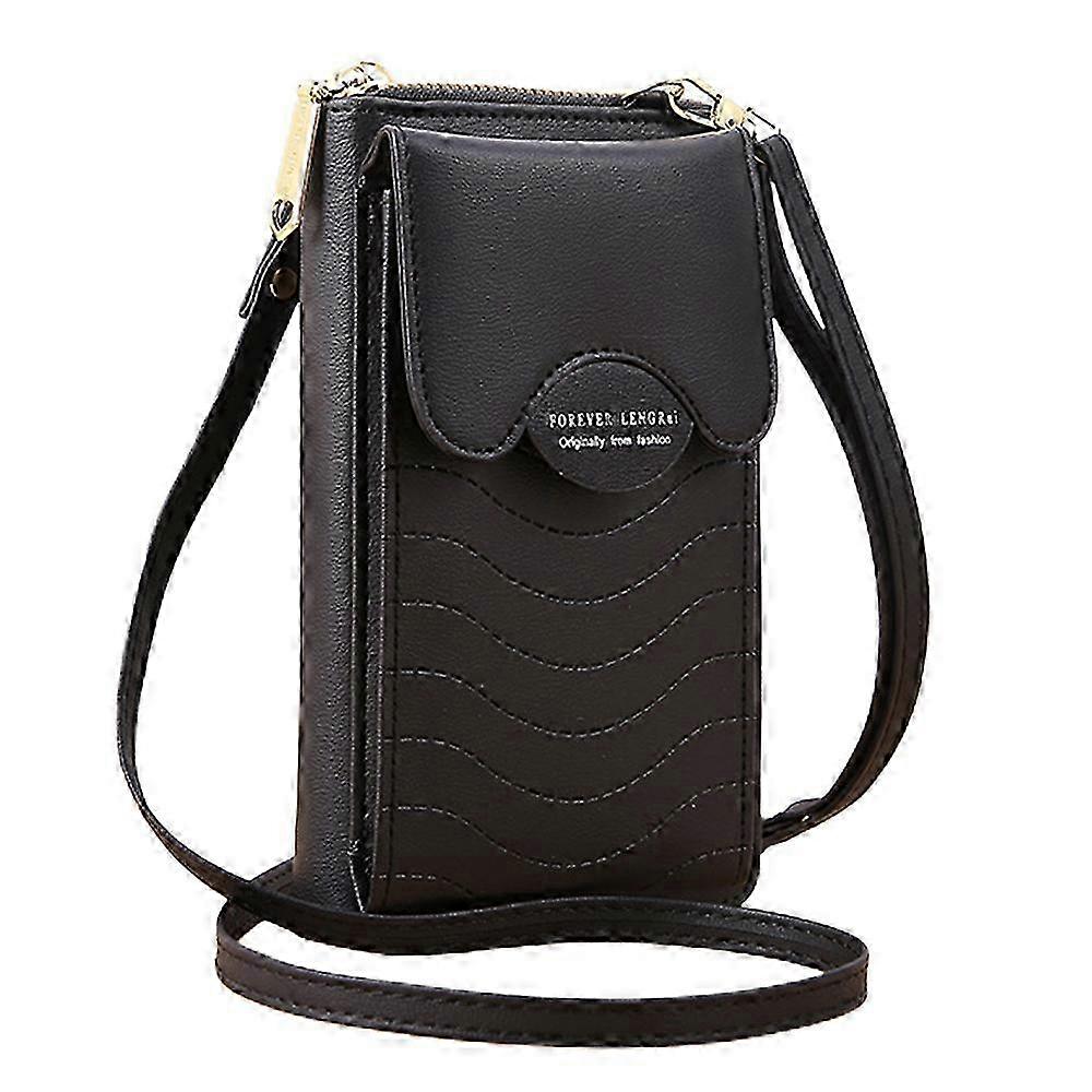Large PU Phone Shoulder Bag with Zipper - Multi-functional Long Clutch - Black
