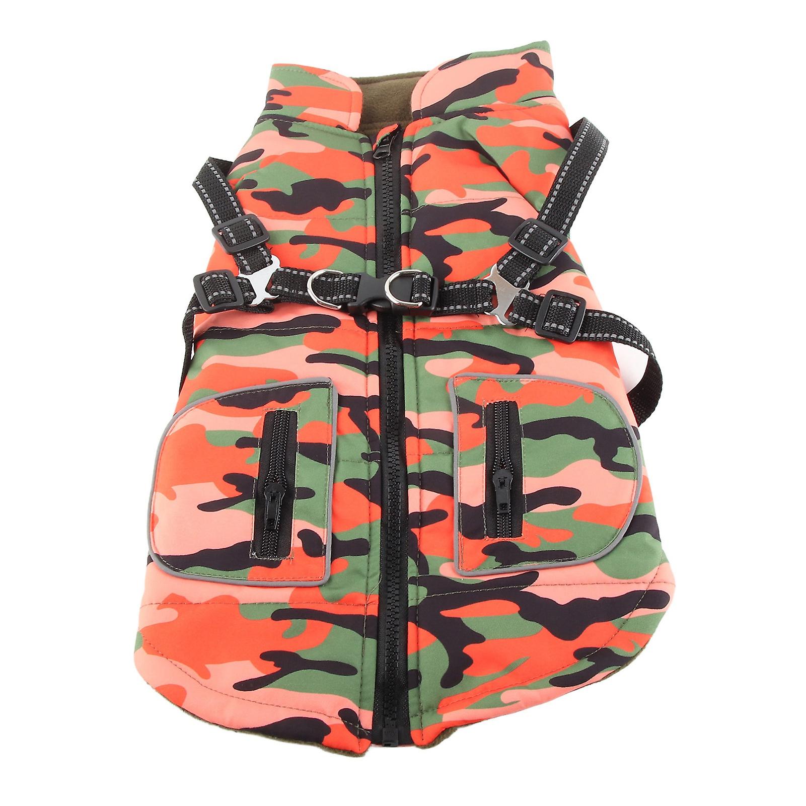 Warm Dog Jacket with Zipper Windproof Fleece Lined Reflective Strip Winter Coat for Dogs Orange Camouflage M