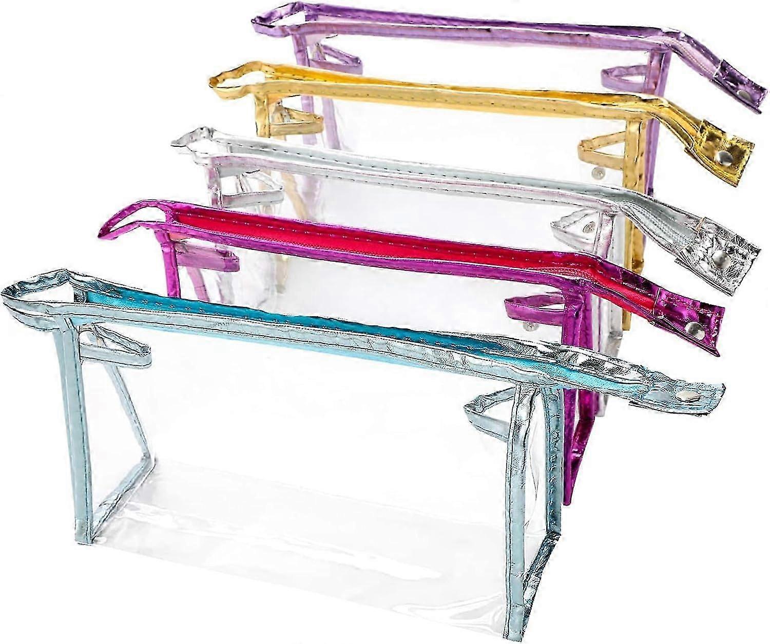 5 Pcs Transparent Waterproof Cosmetic Bag with Zipper Portable PVC Clear Cosmetic Makeup Bag Pouch for Vacation Travel Fashion Transparent Bags--