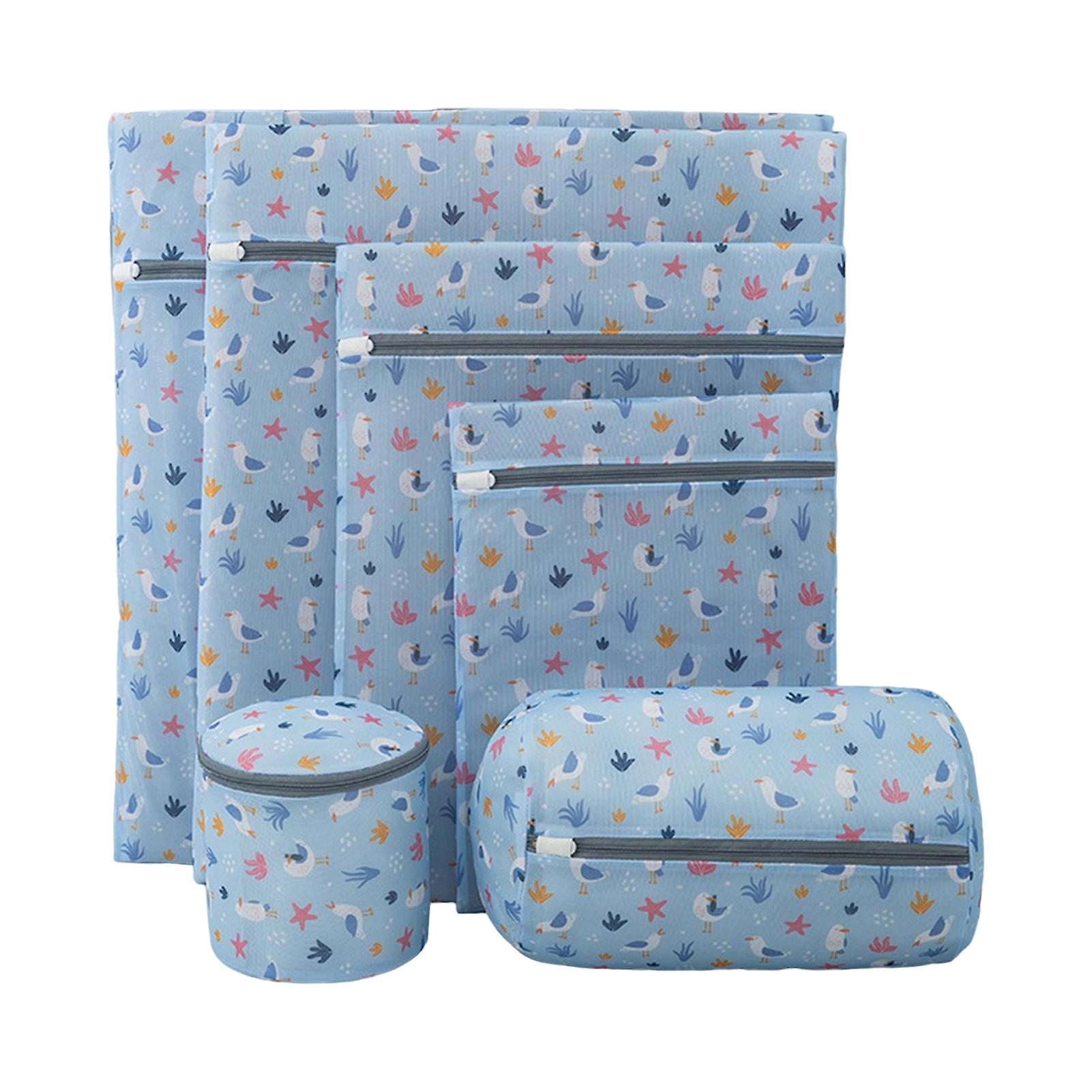 6pcs Laundry Bag With Zipper Thick Fine Mesh Patterns Printing Foldable Cleaning Polyester Underwear Bra Clothing Washing Bag For Travel