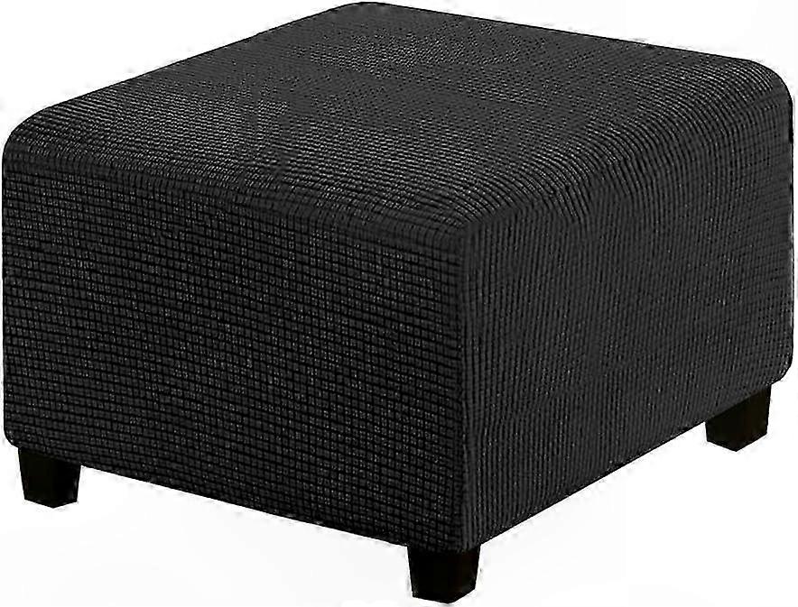 Jacquard Stretch Square Ottoman Cover Sofa Stool Cover Soft Square Footstool Covers Washable Removable (Black,27-32 in/68-81cm)