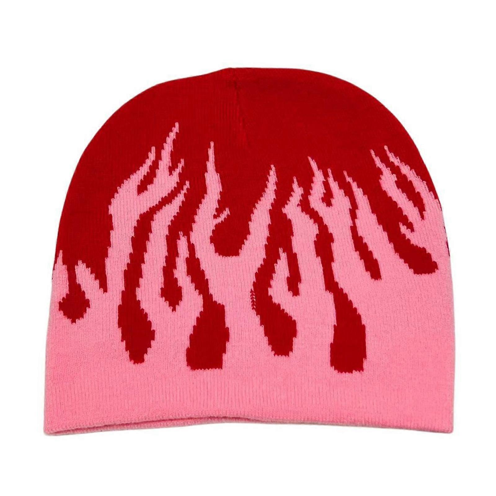 Adult Knitted Flame Pattern Hat Cute Students Outdoor Cycling Skiing Hat Lovely Cold Winter Keep Warm Hat for Couple Pink