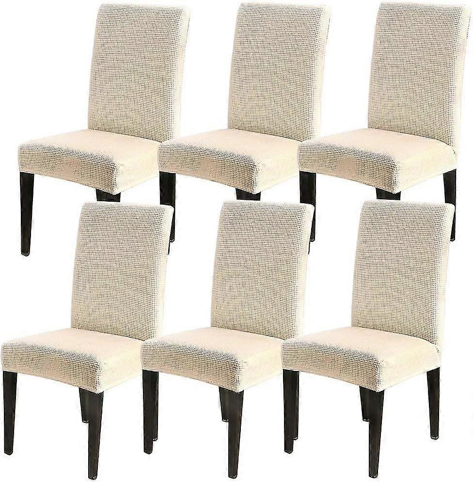 Jacquard Elastic Chair Covers 6 Pieces, Universal Removable Washable Dining Chair Slipcover, Stretch Chairs Cover For Kitchen, Hotel, Restaurant (beig