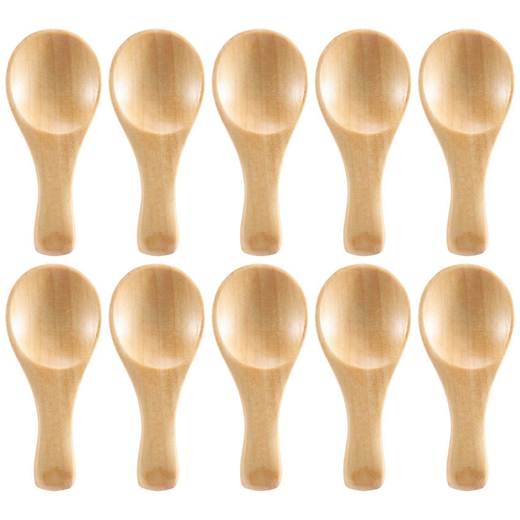 Short Handle 10 Packets of Small Wooden Spoon, Perfect for Small Jars of Jam, Spices, Condiments, Seasonings, Sugar, Honey, Coffee, Tea, Mustard, Ice