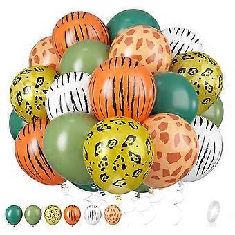 Jungle Balloons, 30Pcs 12 Inch Jungle Safari Animal Print Balloons, Jungle Safari Theme Party Decorations, Green Latex Balloons Leopard Zebra Tiger