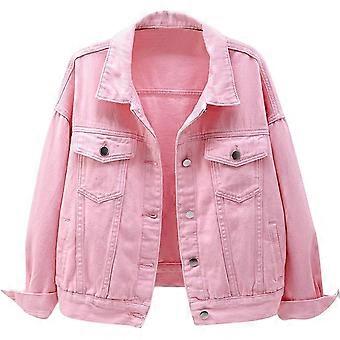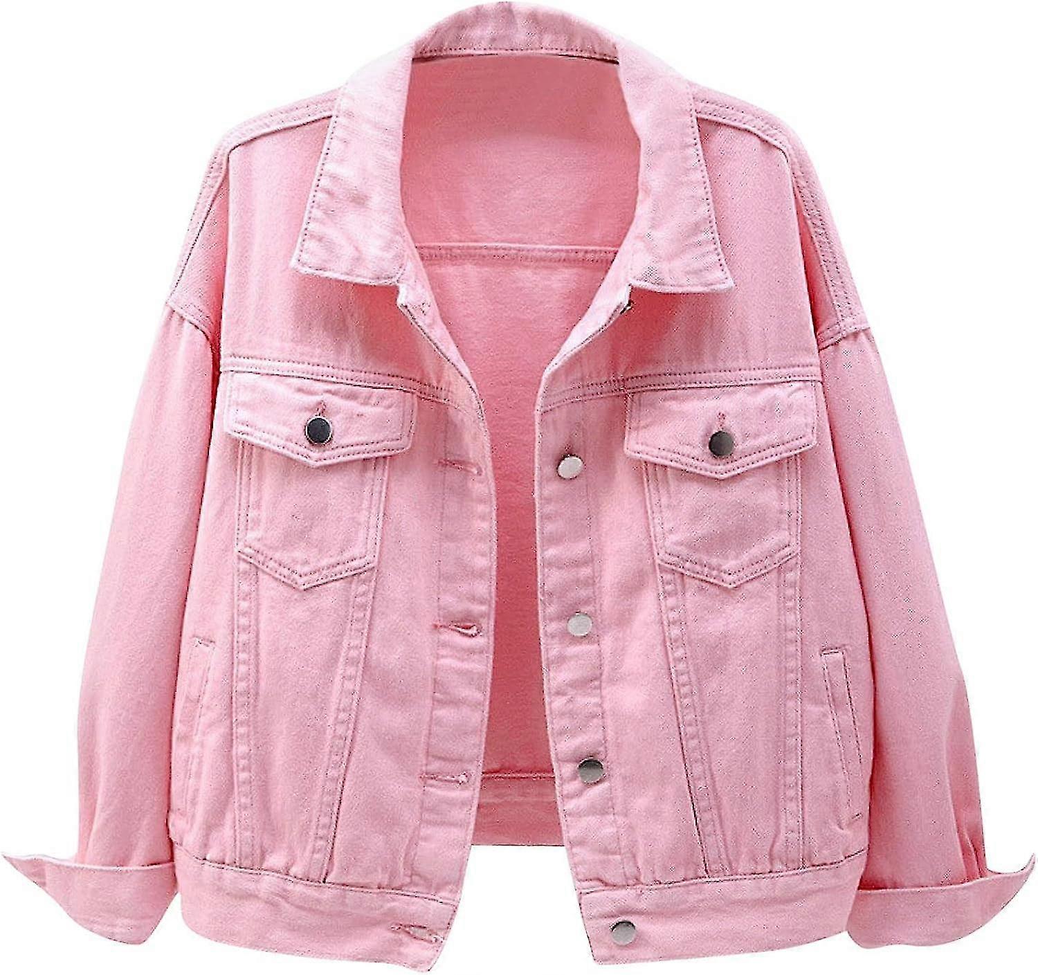 Jean Crop Top Jacket Womens Candy Color Denim Jacket Relaxed Fit Casual Jean Trucker Jacket Open Shoulder Tops