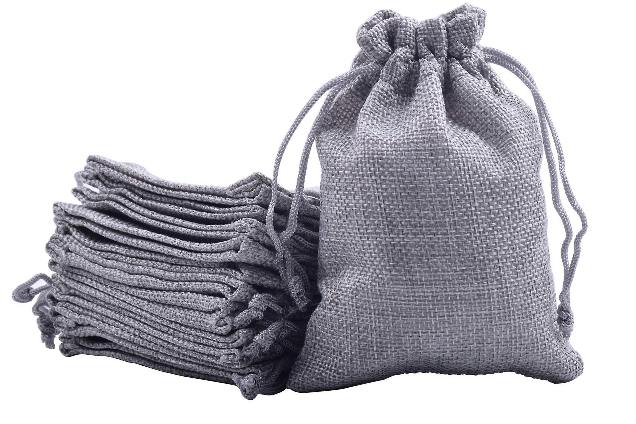 50pcs Jute Gift Bags 4x5.6 Inch for Jewelry, Treats, Spices - Small Gray Lining Sacks for Christmas, Weddings, Parties