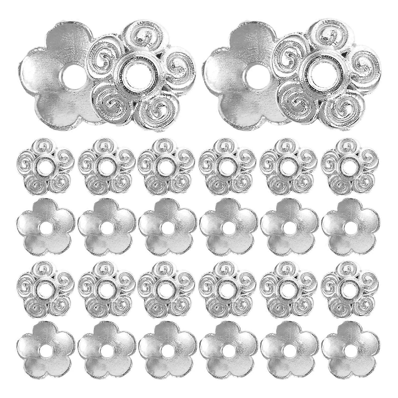 Floral Alloy Flower Beads Caps for Jewelry Making 100Pcs Silver Color