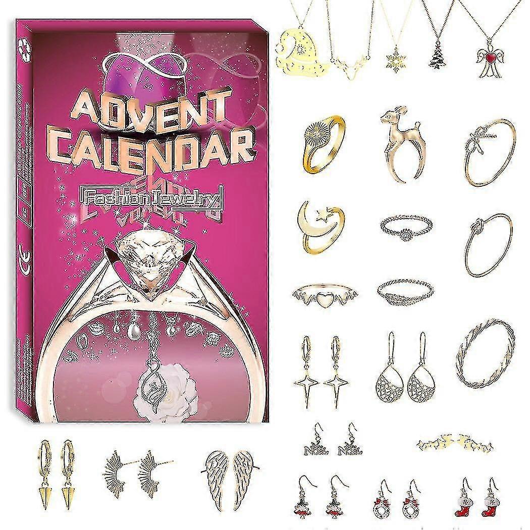 Jewelry Advent Calendar - Christmas Bracelet Necklace Ring Earrings, 24 Days Countdown (1 Calendar)