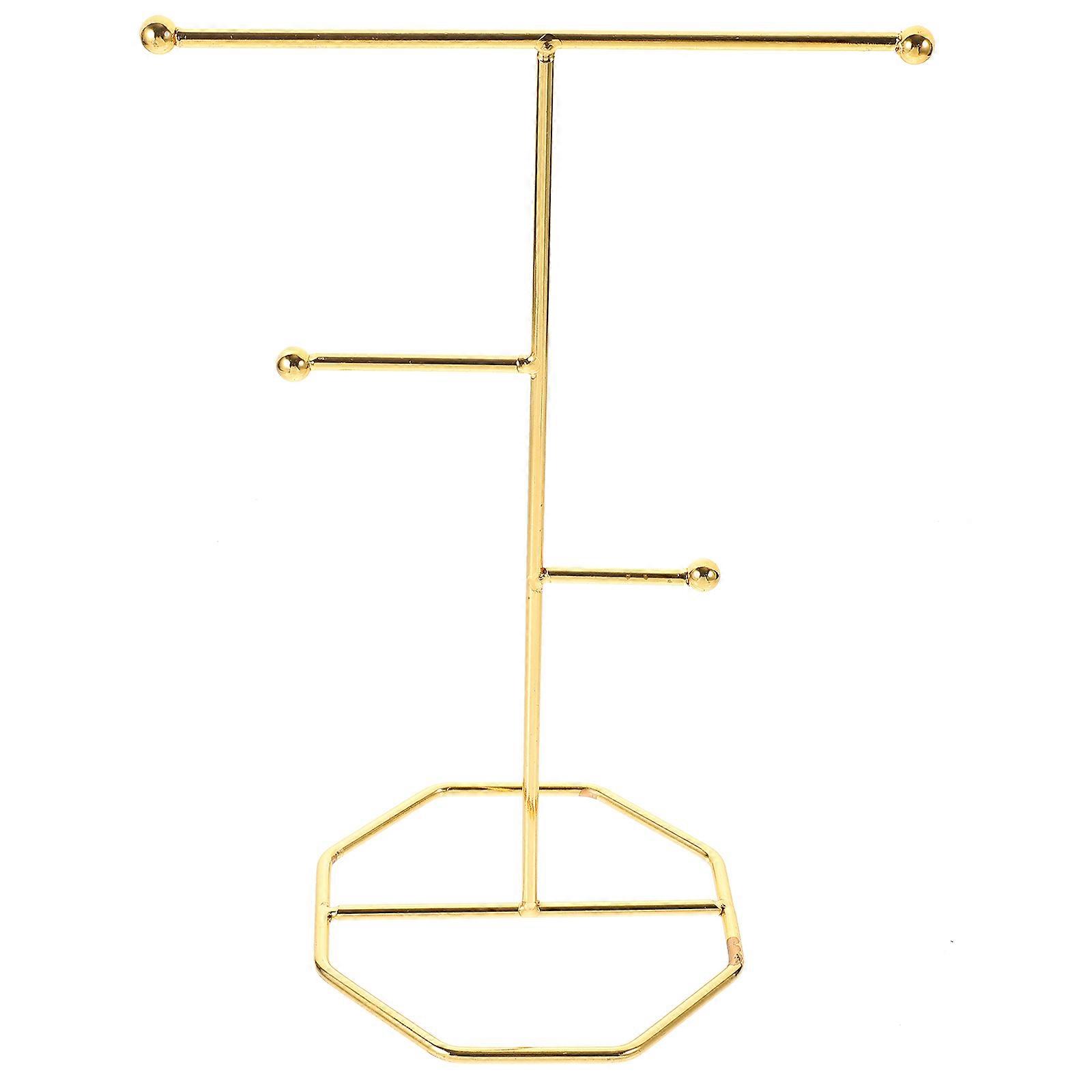 Can be used for displaying jewelry or earring in home. style, which makes it lift the class of your jewelry, attract more customer attention, and increase . It is placing jewelry, earrings and bracelet, so that they are organized, clean and tidy, and convenient for you to choose. Features -Color:Golden -Material:Iron -Size:26.00X18.50X12.00cm/10.22X7.27X4.72in - The jewelry organizer stand your jewelries well-organized, to help you quickly find the one you need, provide convenience and save time. - Suitable for storing and displaying earrings, necklace, bracelets, ear-studs, jewelry, and more. - Necklace Display Rack is designed to fit on any dressing table, bedside table or dressing table, bedroom and office. - Made of iron material, safe and . Simple but design, perfect for organizing or displaying your nice jewelry. - Perfect for counters, window displays, retail outlets, handicraft displays and individual use. Package list: 1 x Jewelry Stand